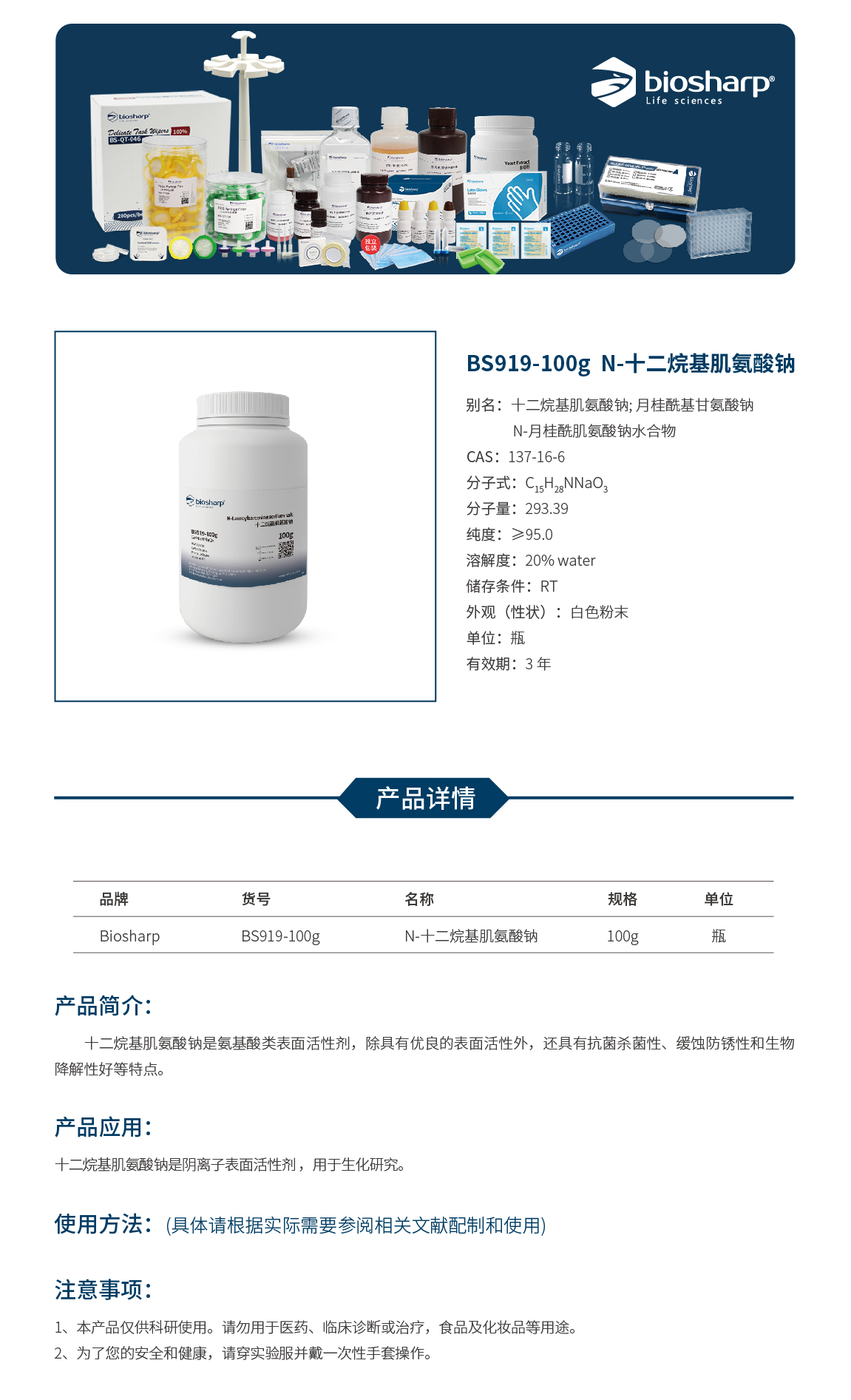 BS919-100g 100g 10瓶/盒 Biosharp ¥134.40