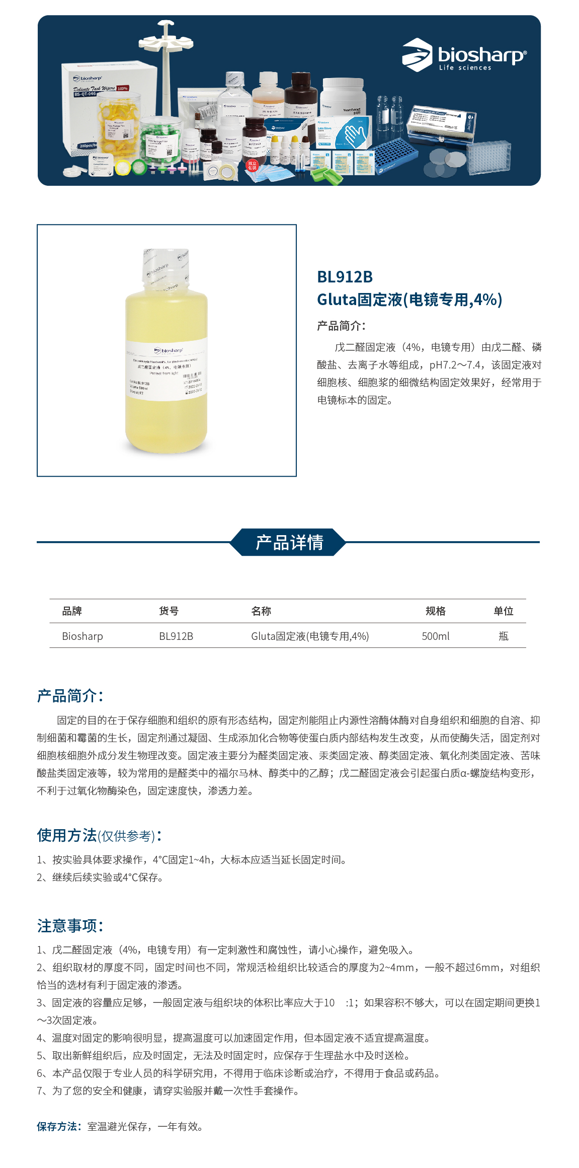 BL912B 500ml 10瓶/盒 Biosharp ¥700.00