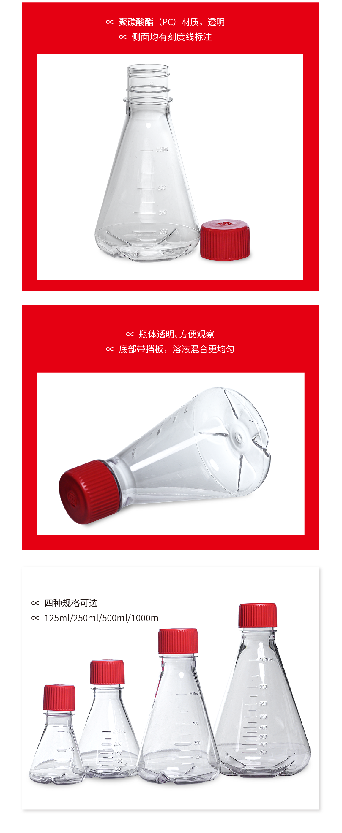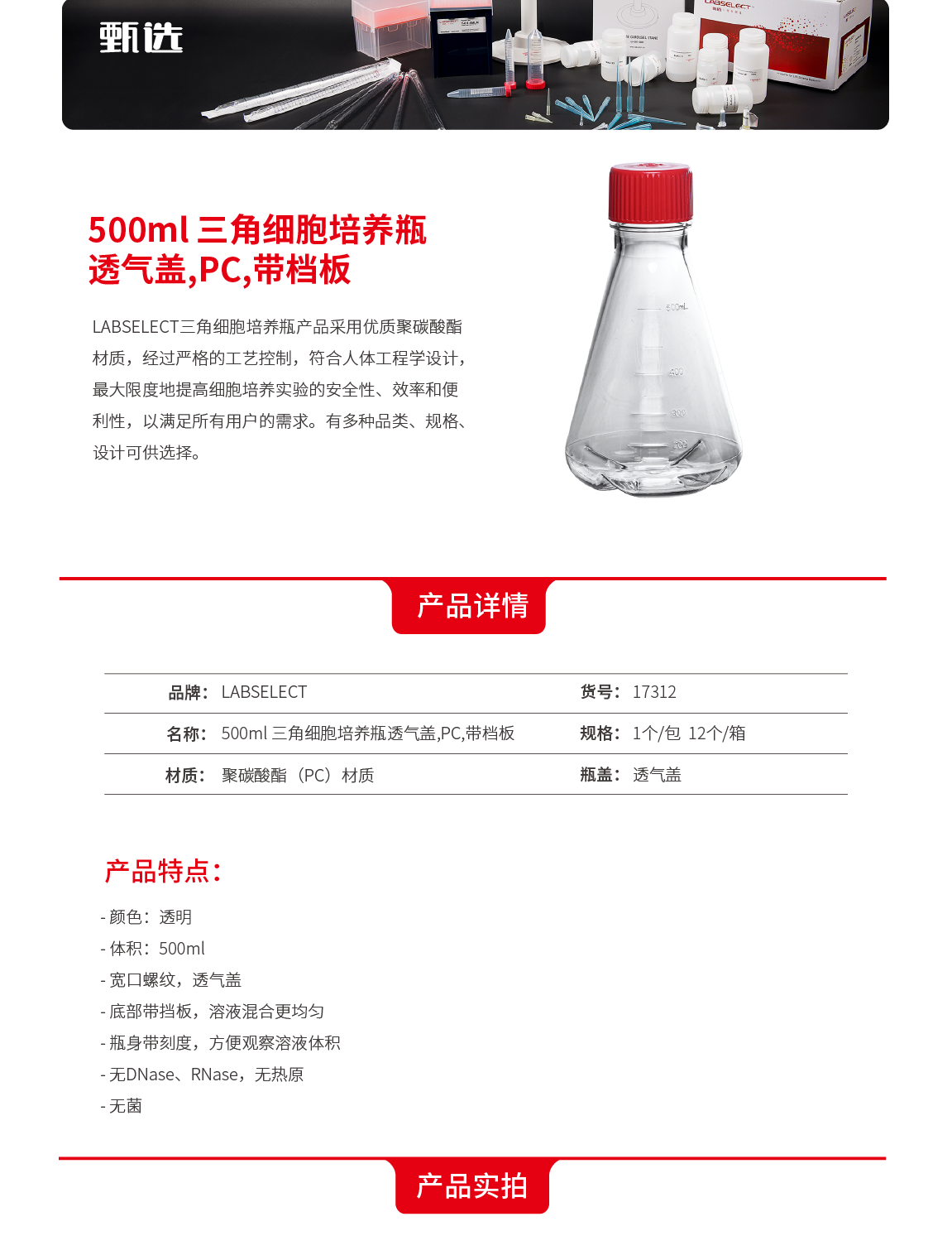 17312 500ml三角细胞培养瓶透气盖,PC,带档板